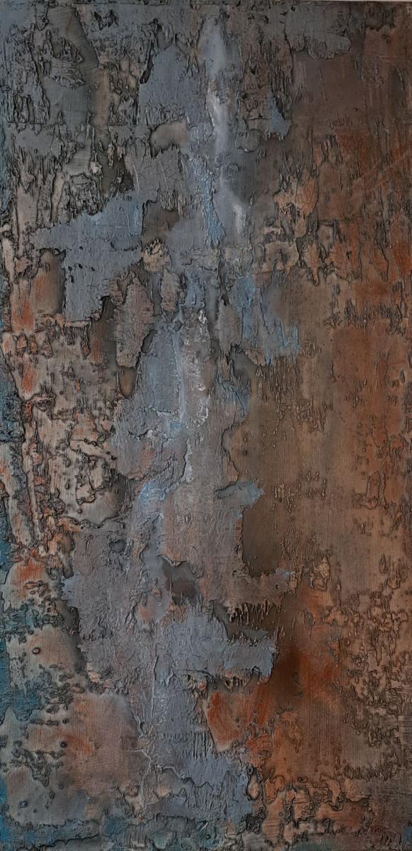 Il tempo che si deposita strato dopo strato, una pelle ferita che conserva tracce di ciò che ha attraversato.L'opera parla di resistenza, ditrasformazione lenta,di bellezza non levigata,racconta una storia non lineare ma molte storie sovrapposte.